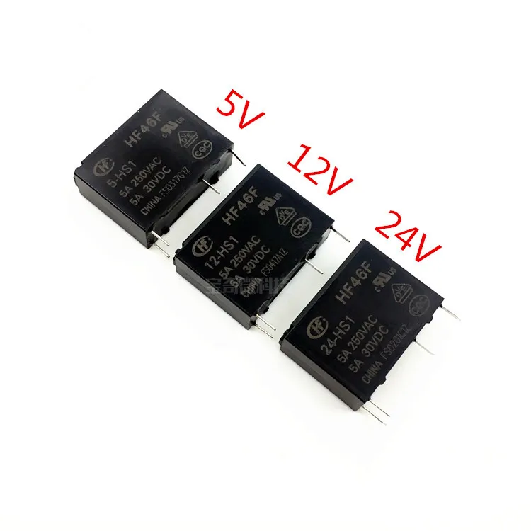 5 uds relés HF46F 5A 4 pines HF46F-5-HS1 HF46F-12-HS1 HF46F-24-HS1 relé de potencia A normalmente abierto 5 12 24 VCC 5A 250 VCA