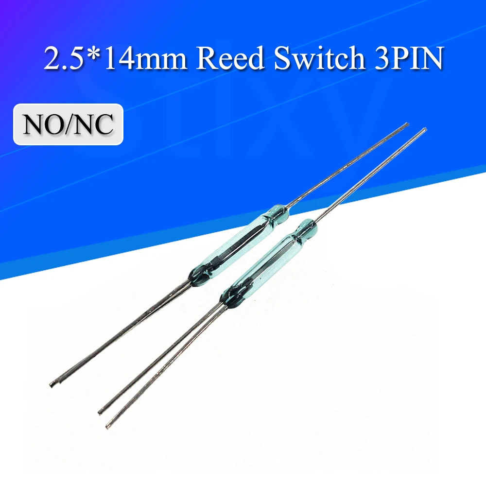 Comprar 5 uds interruptor de láminas interruptor magnético de 3 pines 2,5*14mm conversión normalmente abierta normalmente cerrada 2,5X14MM sin conversión NC para sensores