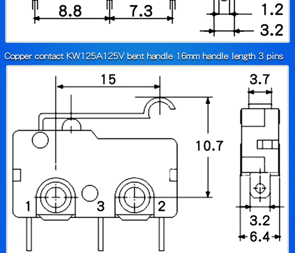 5 uds interruptor de límite de viaje contacto plateado Micro interruptor de límite momentáneo mango recto KW12 5A 125V Micro interruptor