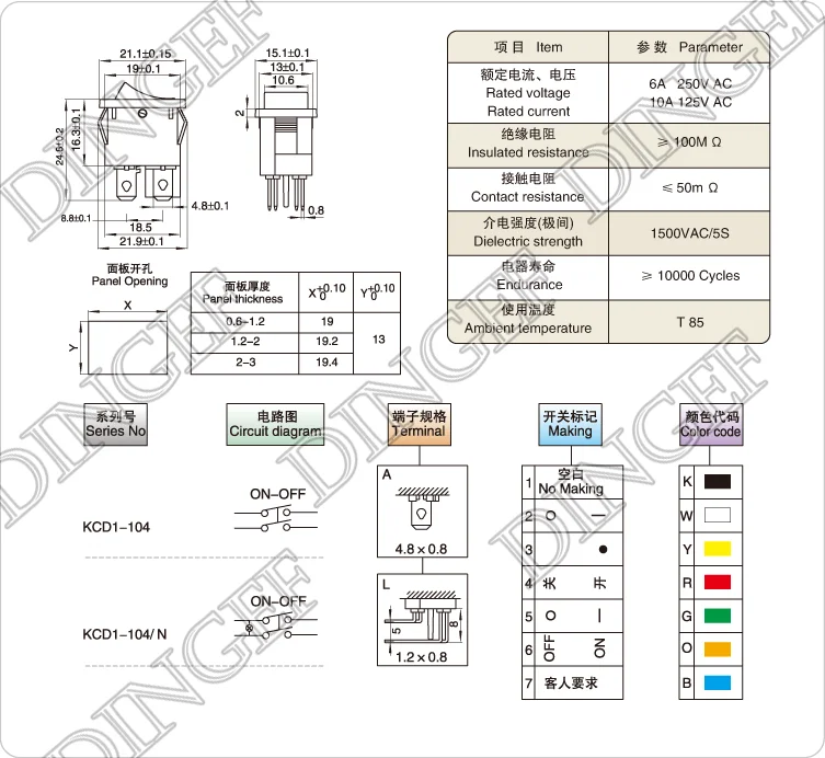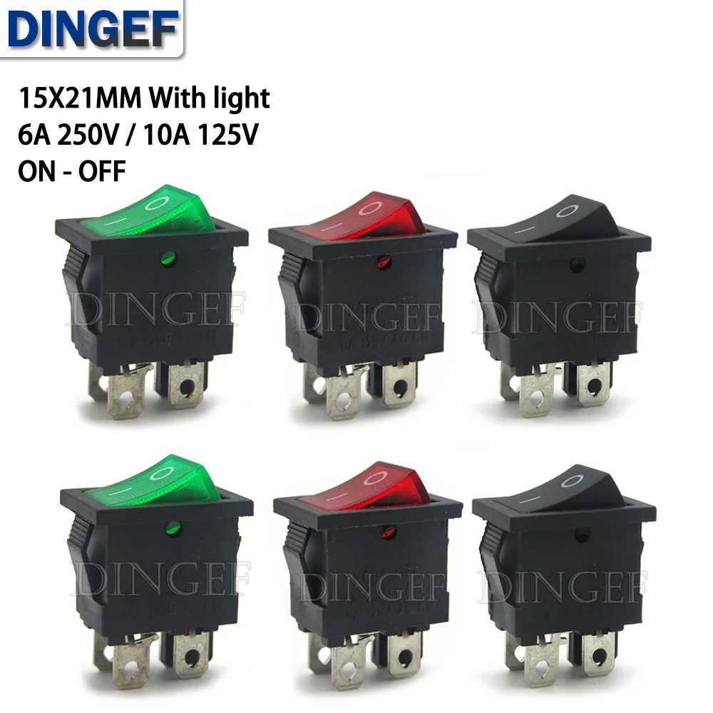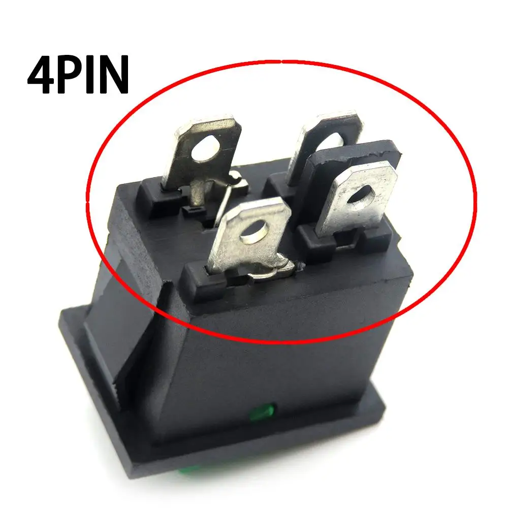 Comprar 5 uds interruptor ON-OFF KCD1 15*21mm 4PIN interruptor tipo barco 6A 250V 10A 125V 15X21 interruptor basculante interruptor de alimentación con luz 15x21mm 4P