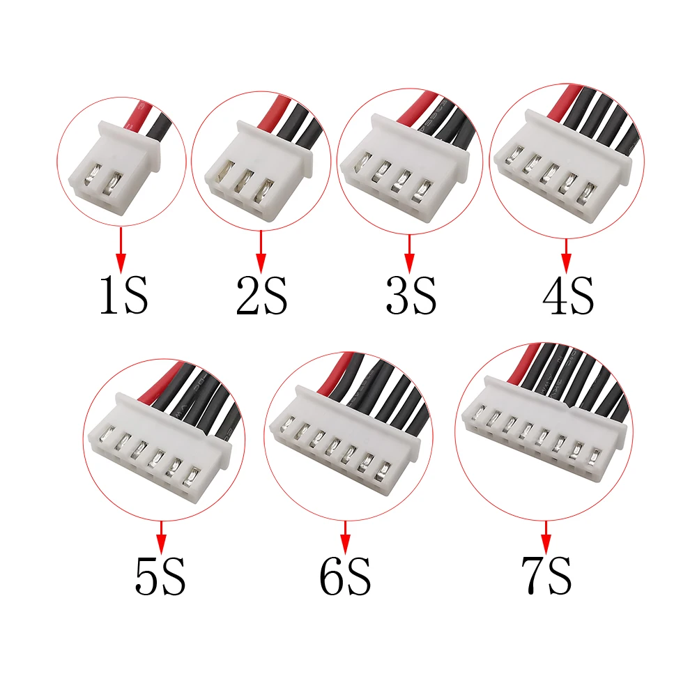 5Pcs JST-XH 2.54mm Pitch 1/2/3/4/5/6/7S Balancer Cable 22AWG Silicone RC Lipo Battery Balancer Charger Plug Wire Connector