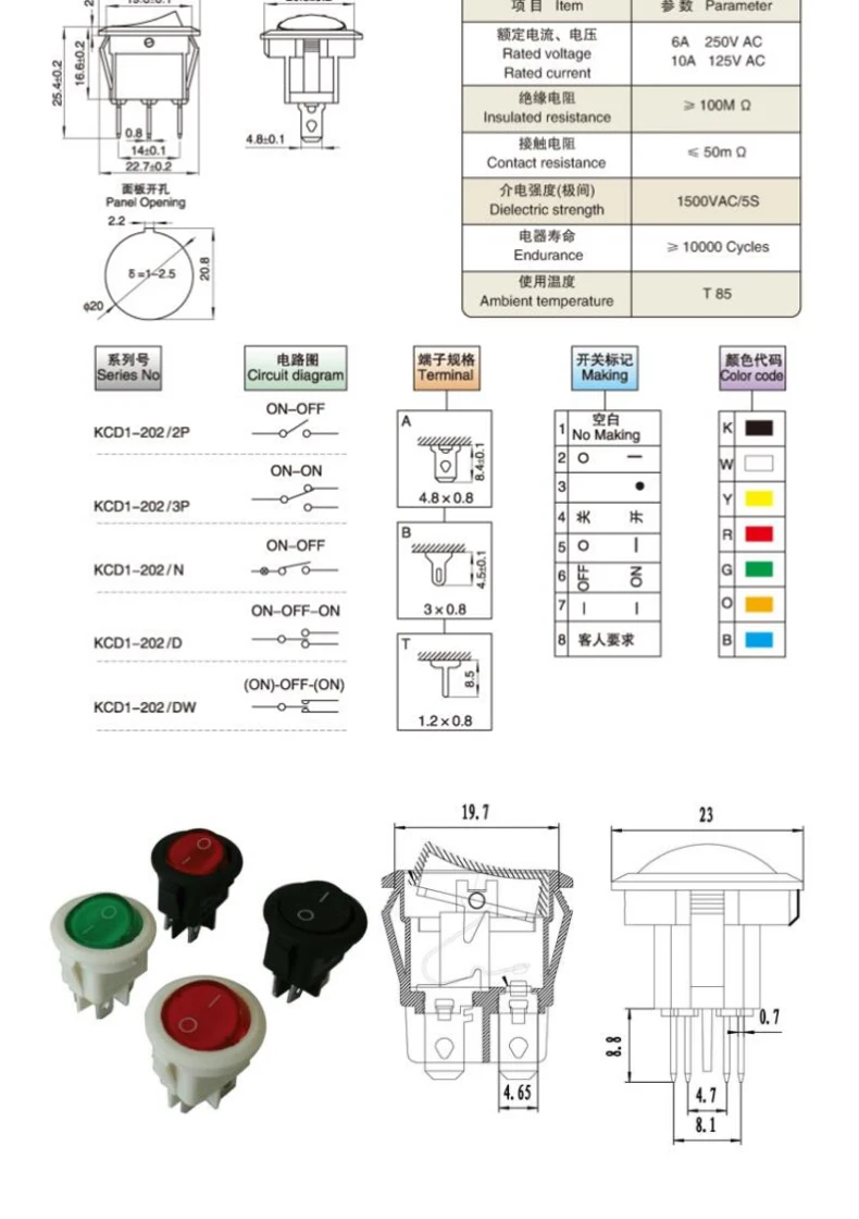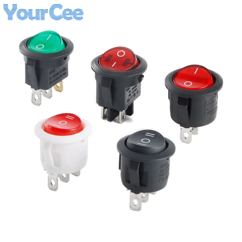 5 uds KCD1 interruptor basculante ovalado 3/2Pin 10A interruptor de alimentación 6A 250V 10A 125V ON-OFF-ON interruptor en forma de barco elíptico rojo 4P redondo 20A