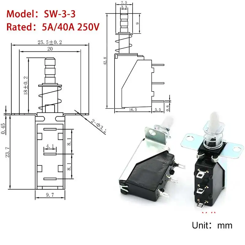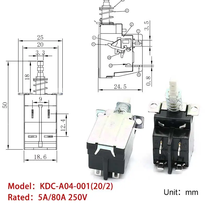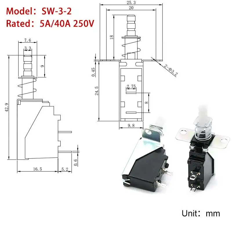5 uds KDC-A04 interruptor de alimentación de 2/4 pines interruptor de bloqueo automático SW-3-2 interruptor de botón de Campana Extractora 250V AC teclas rectas SW TV-5CJ