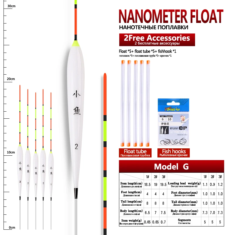 5 unids/lote flotadores de pesca de aguas poco profundas Nano Bobber compuesto + 5 uds tubos flotantes + 1 bolsa ganchos de regalo flotador de pesca aparejos de Pesca