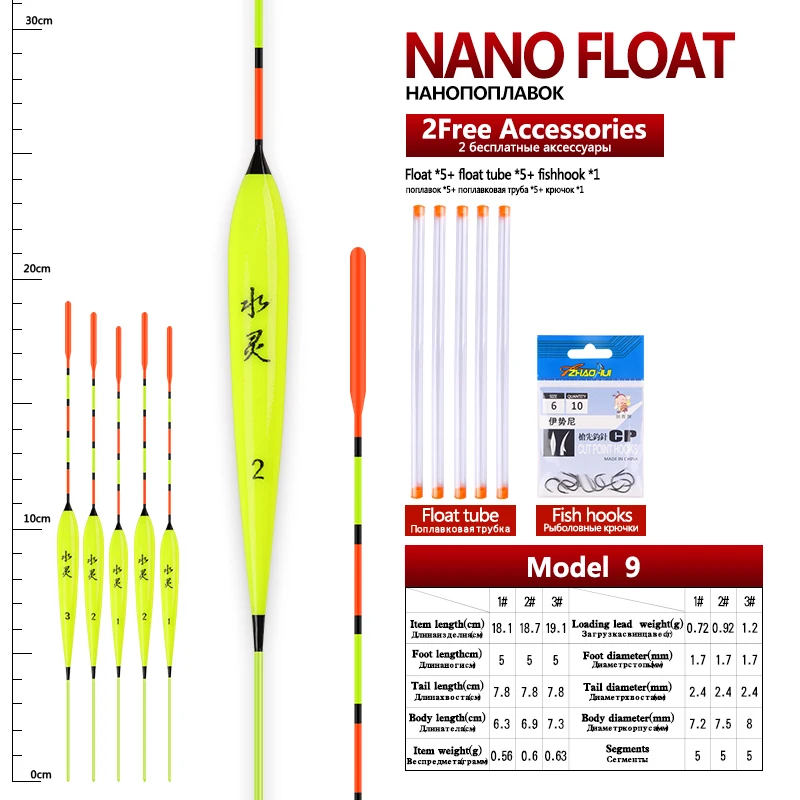 Comprar 5 uds/lote flotadores de Pesca de aguas poco profundas Nano Bobber compuesto + 5 uds tubos flotantes + 1 bolsa de anzuelos de regalo herramientas de Pesca Flotador