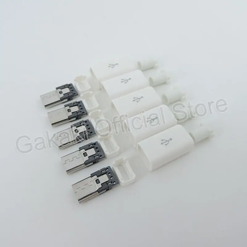 Micro USB 5 pines tipo soldadura conectores macho Cable de datos accesorios de interfaz toma de carga trasera USB blanco negro