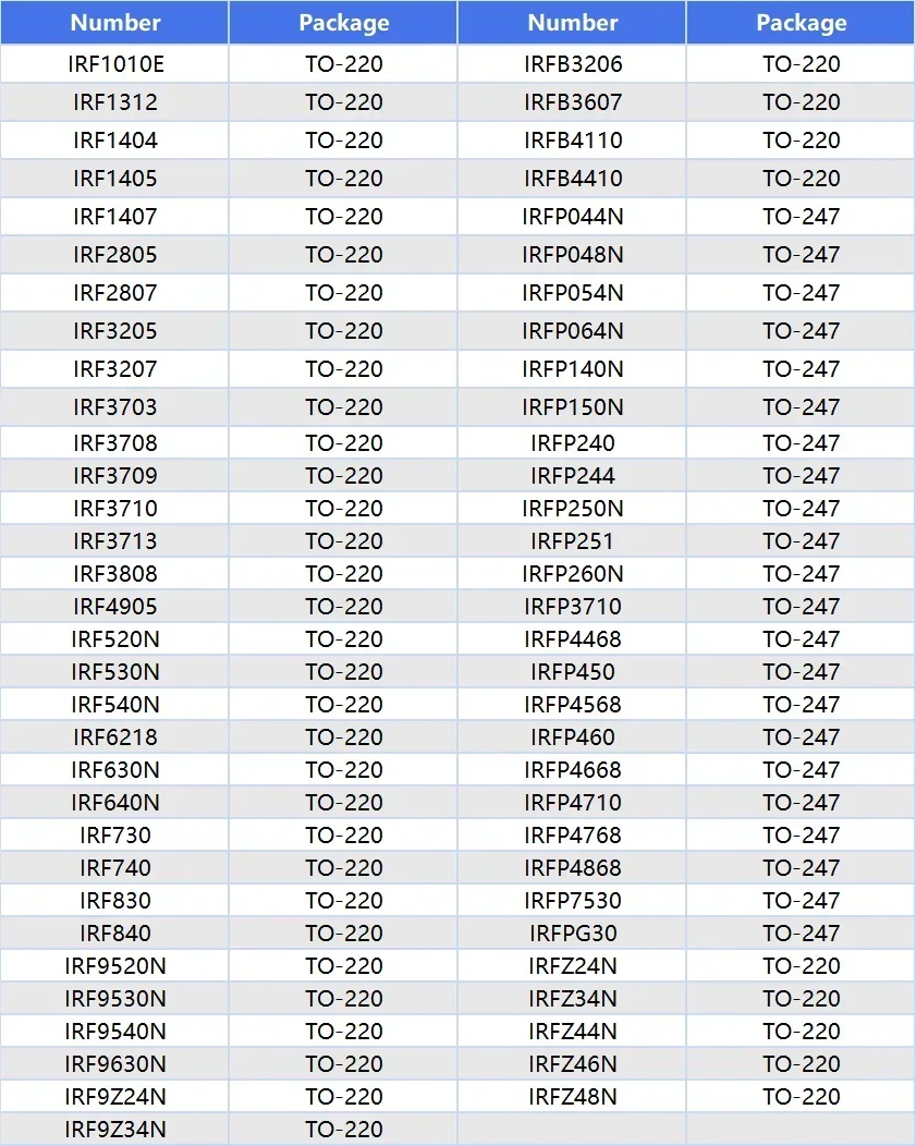 5 uds IR Mosfet Transistor IRFB3206PBF IRFB3607PBF IRFB4110PBF Kit de transistores TO-220 para inversores accionamientos de Motor fuentes de alimentación
