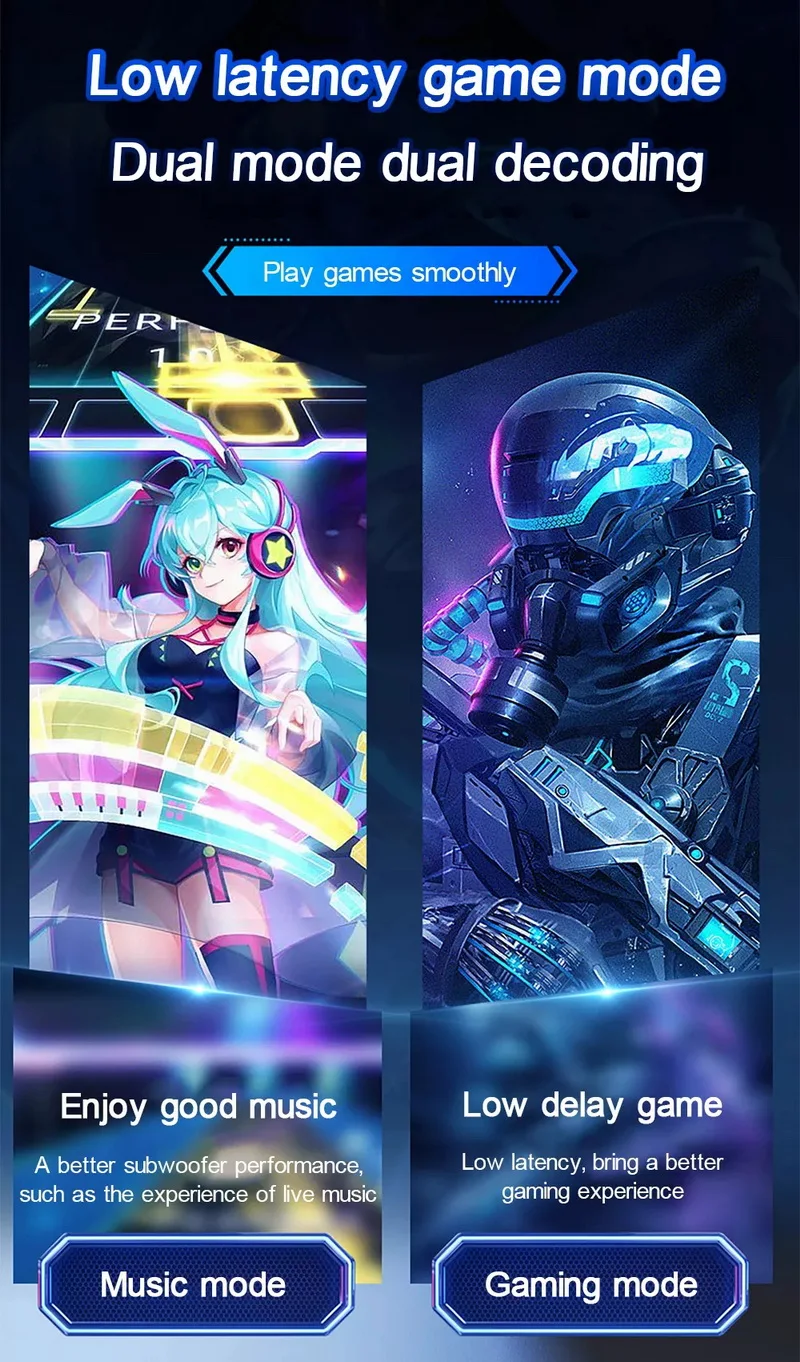 ⬤[Modo dual de música/juego]:Sincronización de calidad de sonido y baja latencia.
