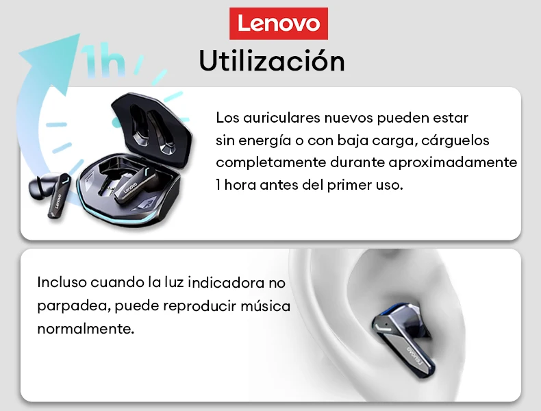 Tiempo de carga: aproximadamente 1 hora (auriculares)