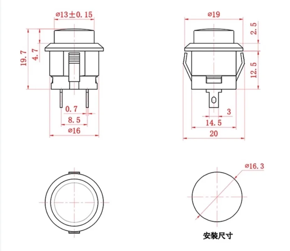 Nombre del producto: interruptor de botón de reinicio automático