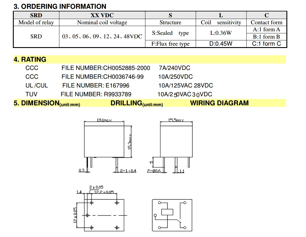 5 uds relé de potencia srd-09vdc-sl-c 10a 5pin T73 Srd 9v Realys