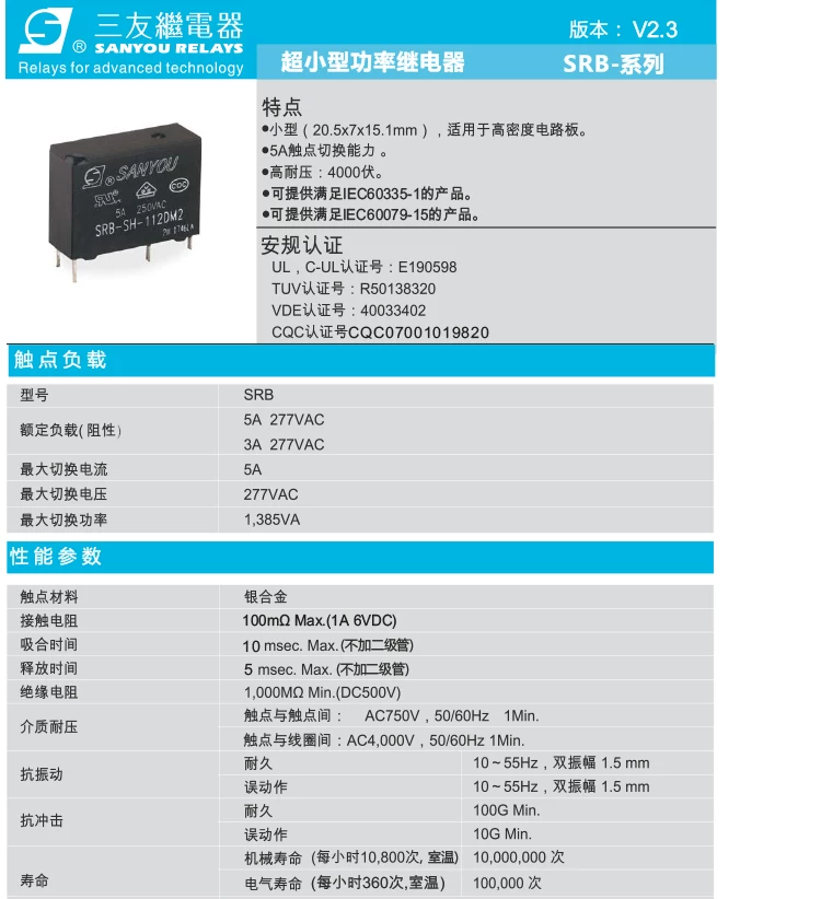 La versión de 12 voltios, SRB-S-112DM2, ya funciona a 8.1 voltios, se deben usar 12 voltios. Todo funcionó bien, los interruptores son buenos. Úselo con componentes adicionales apropiados, por supuesto. La distribución de pines coincide con la hoja de datos encontrada en línea. bonito y ligero. enviar pegado en esa espuma blanca, envuelto y en la famosa bolsa de burbujas amarilla.