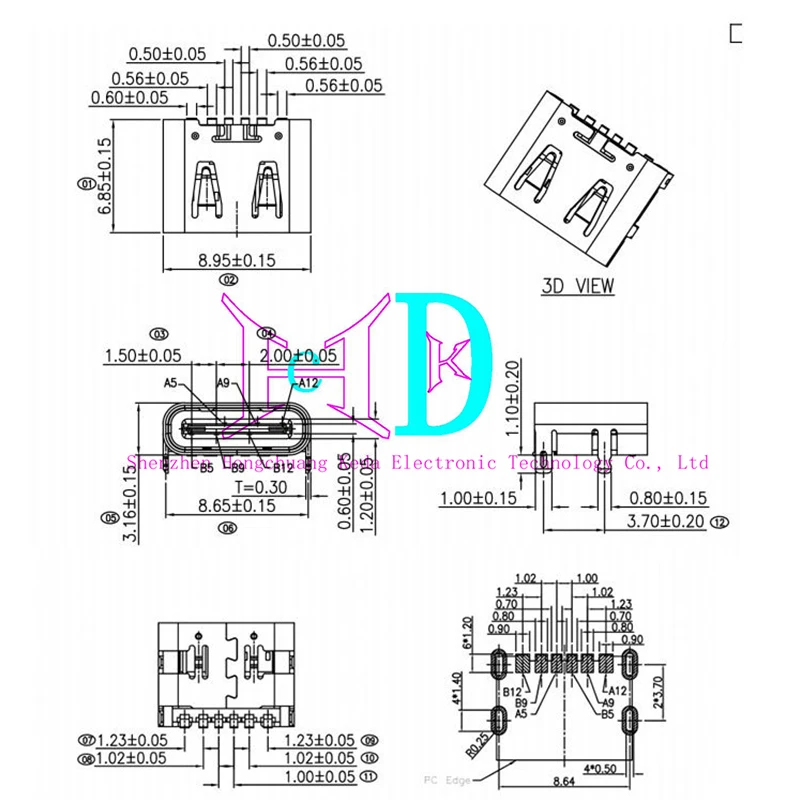 5 uds USB tipo C hembra Jack puerto de carga enchufes conector de 6 pines SMD PCB soldadura DIY reparación USB tipo C adaptador de enchufe