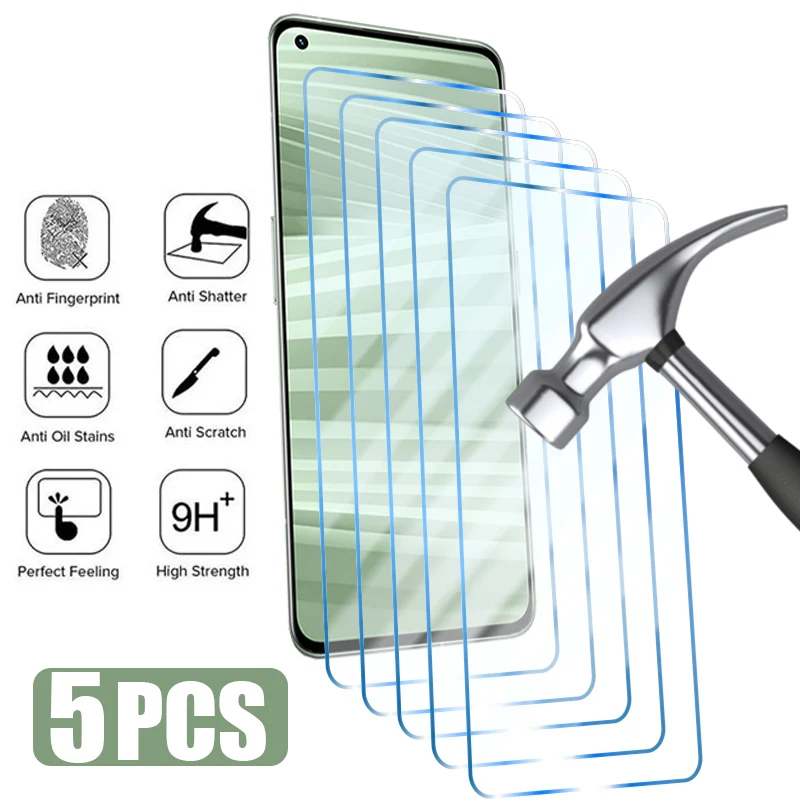 5 uds vidrio protector para Realme 7 8 9 Pro Plus 8i Protector de pantalla para Realme C11 C21 X2 GT 2 Pro Neo 2 3 vidrio templado