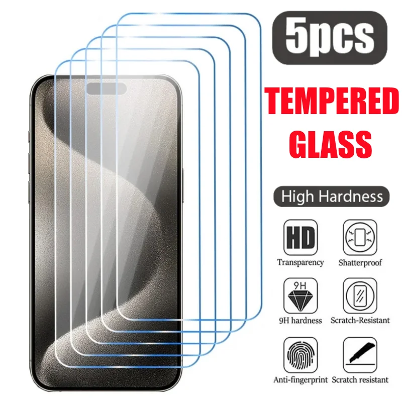 Comprar 5 uds vidrio templado para IPhone 15 14 13 12 Mini 11 Pro MAX Protector de pantalla para IPhone 6 7 8 X XR XS Max SE vidrio Protector