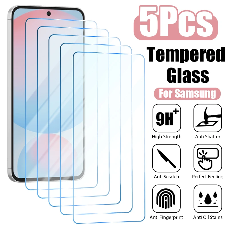 5 uds vidrio templado para Samsung Galaxy A55 A15 A35 A54 A14 A34 A53 A33 A13 A52S A32 A22 5G Protector de pantalla para Samsung A25 A24