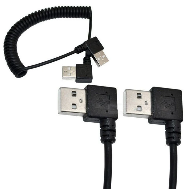 5 pçs/lote Nuevo 5Ft Espiral USB Enrolada 2,0 A Esquerda ângulo de 90 Graus Macho para macho Cabo de extensión