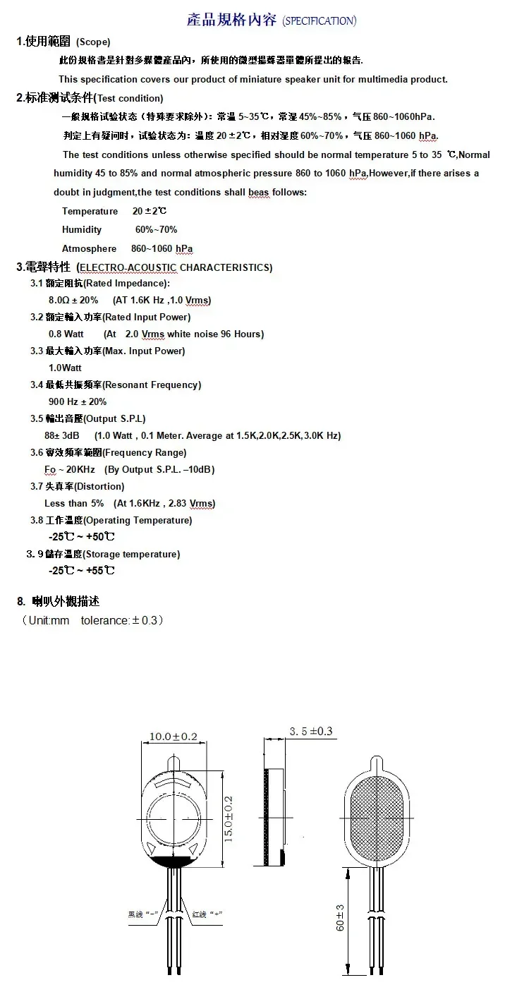 Comprar 5 unids/lote 1510 altavoz teléfono tableta Micro altavoz 1W 8R 8Ohm 1 vatio 1015 10*15MM 3,5 MM de espesor 15*10*3,5 MM