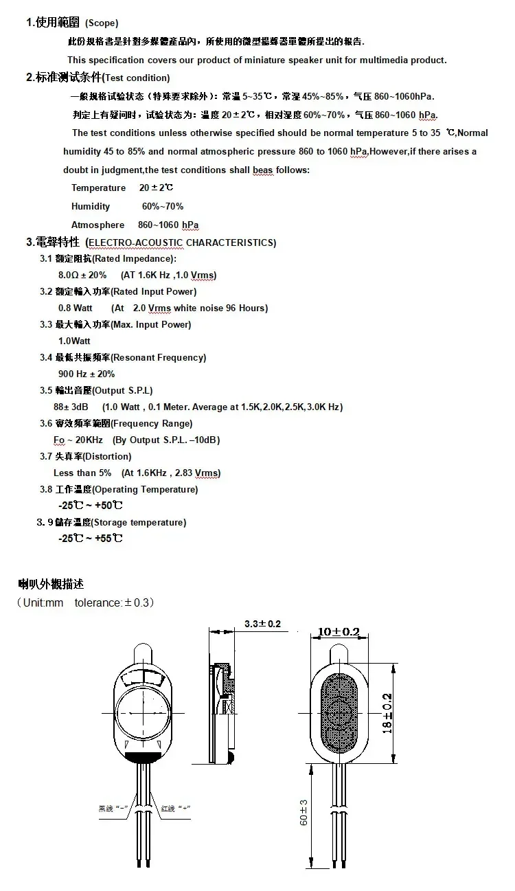 5 unids/lote 1810 altavoz de plástico magnético interno 8Ohm 1 vatio Panel plano elíptico altavoz MP3 longitud del cable 60MM 18*10MM 8R 1 vatio