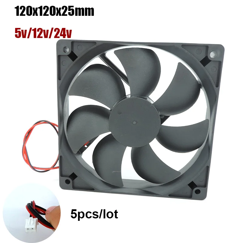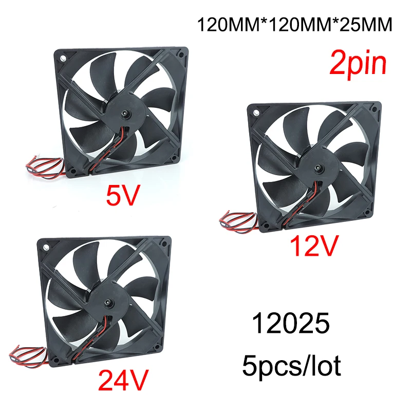 Comprar 5 unids/lote DC 5V 12V 24v 120mm 12cm 12025 ventilador 120mm * 120mm * 25mm ventilador de refrigeración sin escobillas 120x120x25mm 2PIN PC caja de ordenador refrigerador