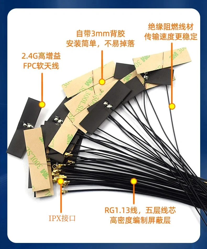 Comprar 5 unids/lote WiFi 2,4G antena suave FPC Flexible integrada de alta ganancia módulo Bluetooth ZigBee antena de parche Ipx4 antena IPX a FPC