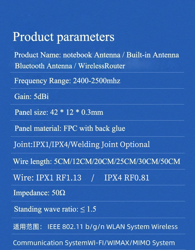 Consejo cálido: el cable de Ipx1 es RF1.13 / el cable de Ipx4 es RF0.81