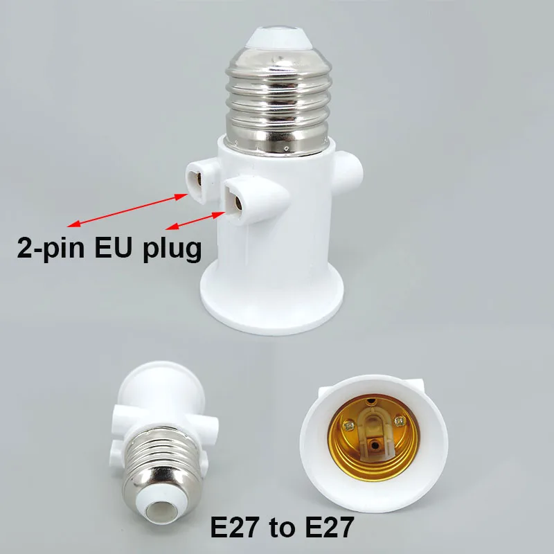 Comprar 5 unids/pack E27 a E27 enchufe de 2 pines conector de cable de enchufe de la UE bombilla LED portalámparas Base tornillo adaptador convertidor de potencia de luz ABS
