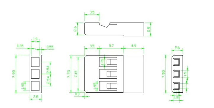 Comprar 50/10 Uds DuPont conectar cabeza 3P JR enchufe 2,54mm hembra macho Dupont Reed Jumper Cable Terminal 2,54 ángulo positivo biselado cuerpo principal