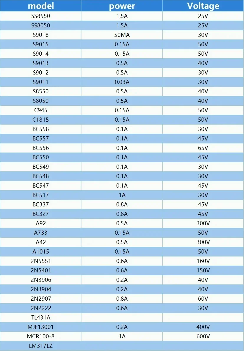 BC337-C1815-100PCS:BC337 BC327 2N2222 2N2907 2N3904 2N3906 S8050 S8550 A1015 C1815 (10 piezas cada una)