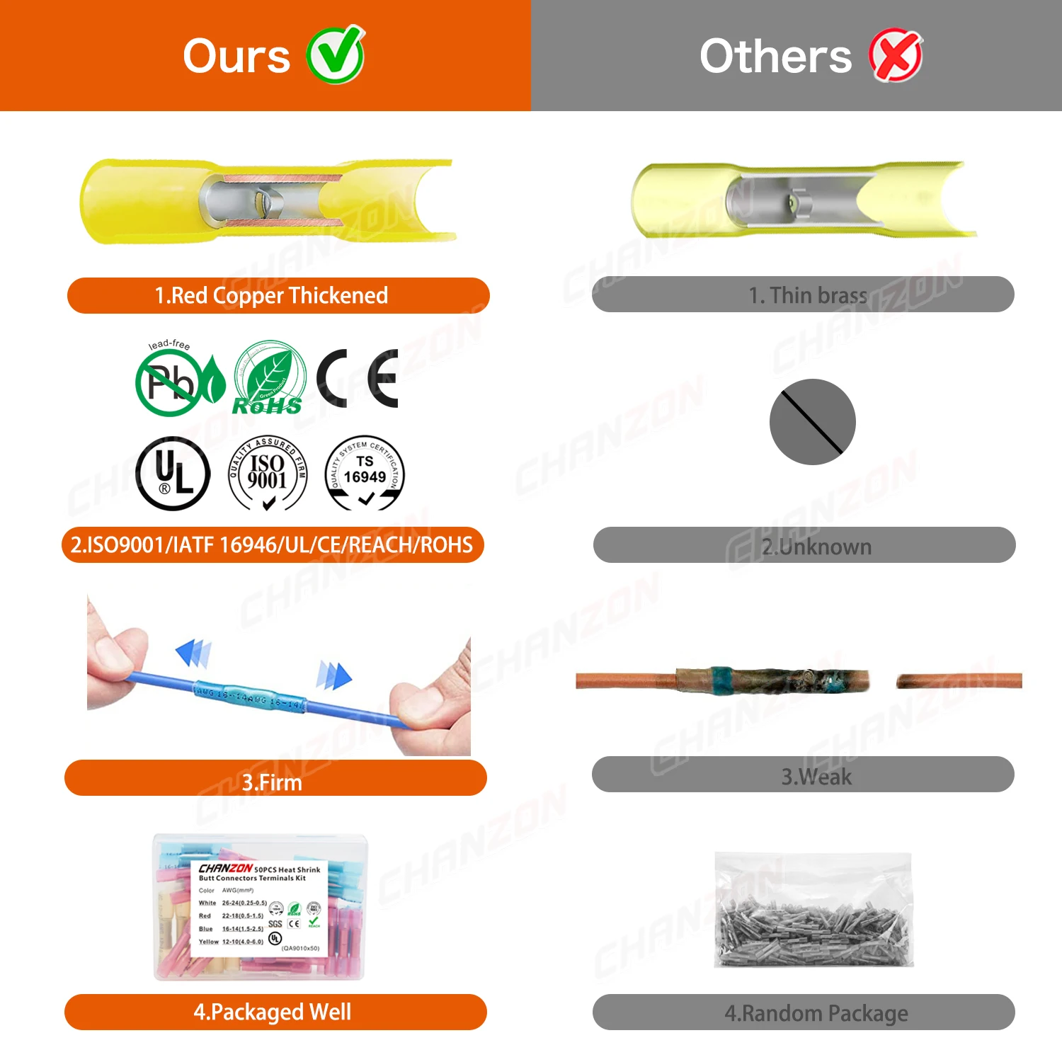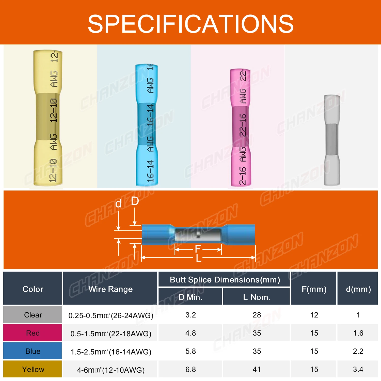 50/100 Uds. Conectores de cable a tope termorretráctiles impermeable soldadura engarzada empalme alambreificación Terminal de tubo de unión de Cable eléctrico