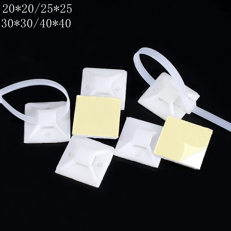 50/100 unids/lote Cable blanco Base 20 25 30 40mm Cable autoadhesivo de montajes de cremallera Bases de soporte de pared de fijación asiento abrazaderas
