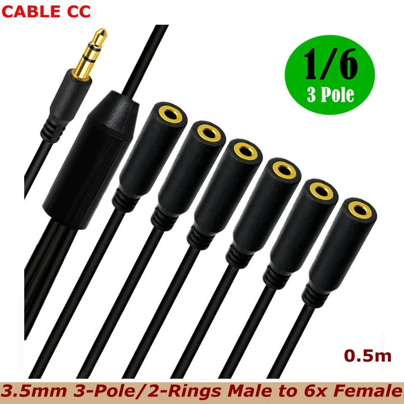 Comprar 50 cm 3,5 mm (1/8 ") TRRS 3 polos/2 anillos macho a 6x hembra 3,5 mm TRRS 3 polos/2 anillos cable de audio divisor estéreo, chapado en oro,