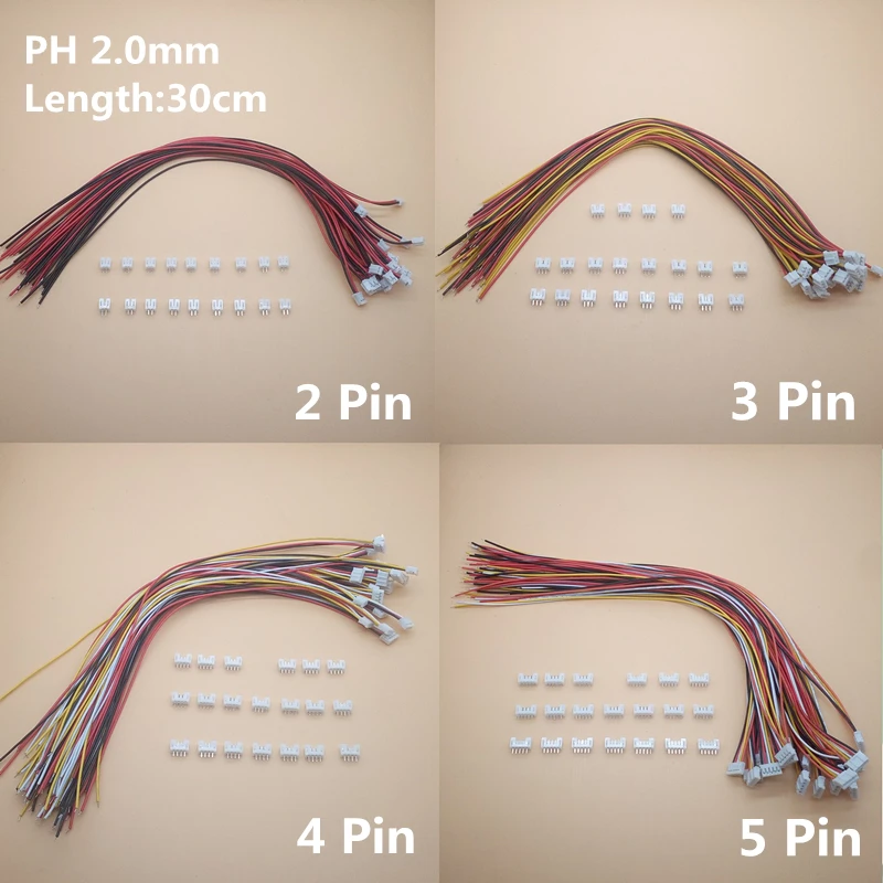 50 juegos PH 2,0mm DIY Line 30cm 2/3/4/5/6/7/8/9/10/12P Pin macho y hembra cable enchufe recto