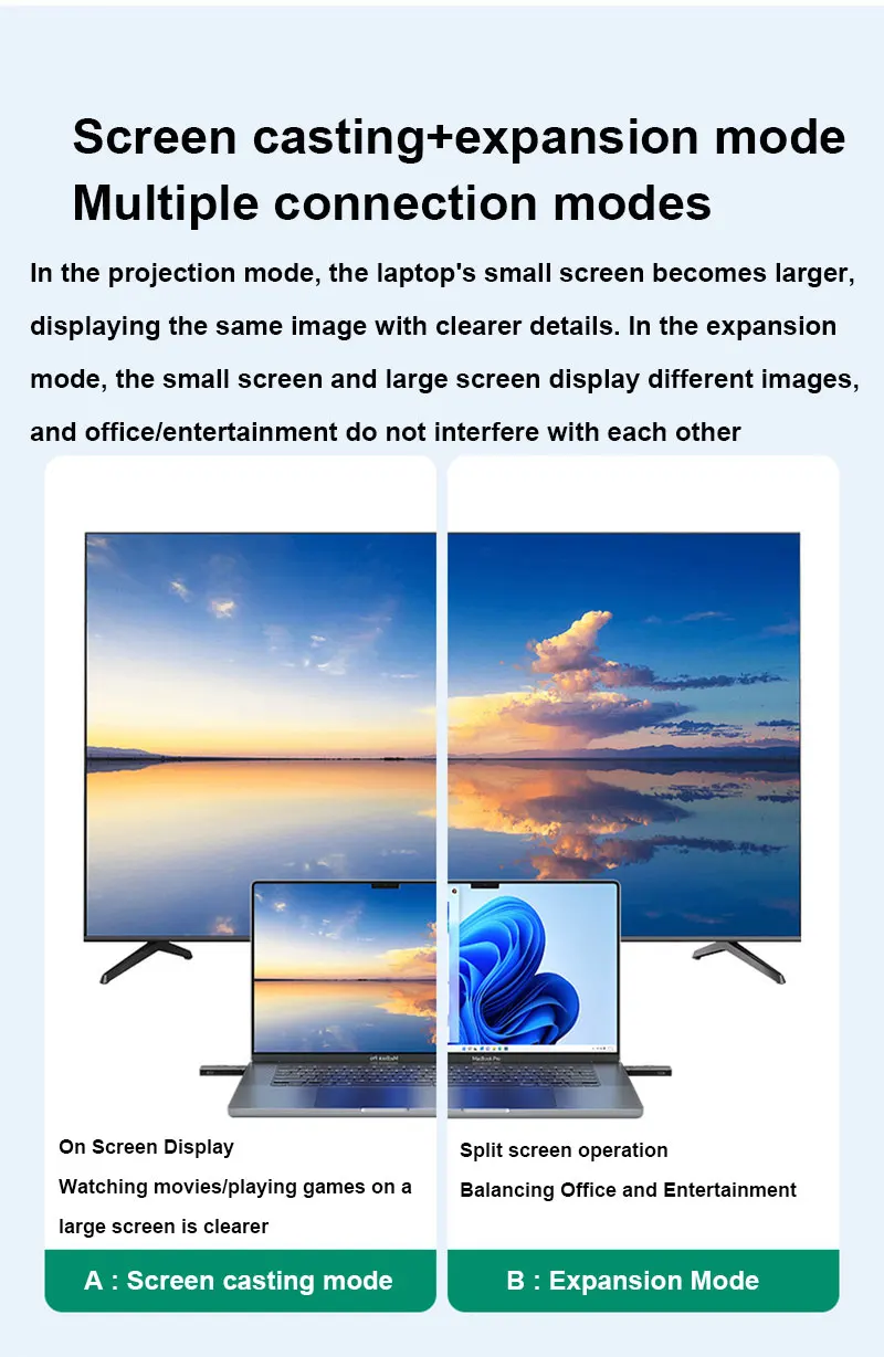5.Sin software, sin configuraciones, sin necesidad de controladores, solo conéctese para transmitir la pantalla