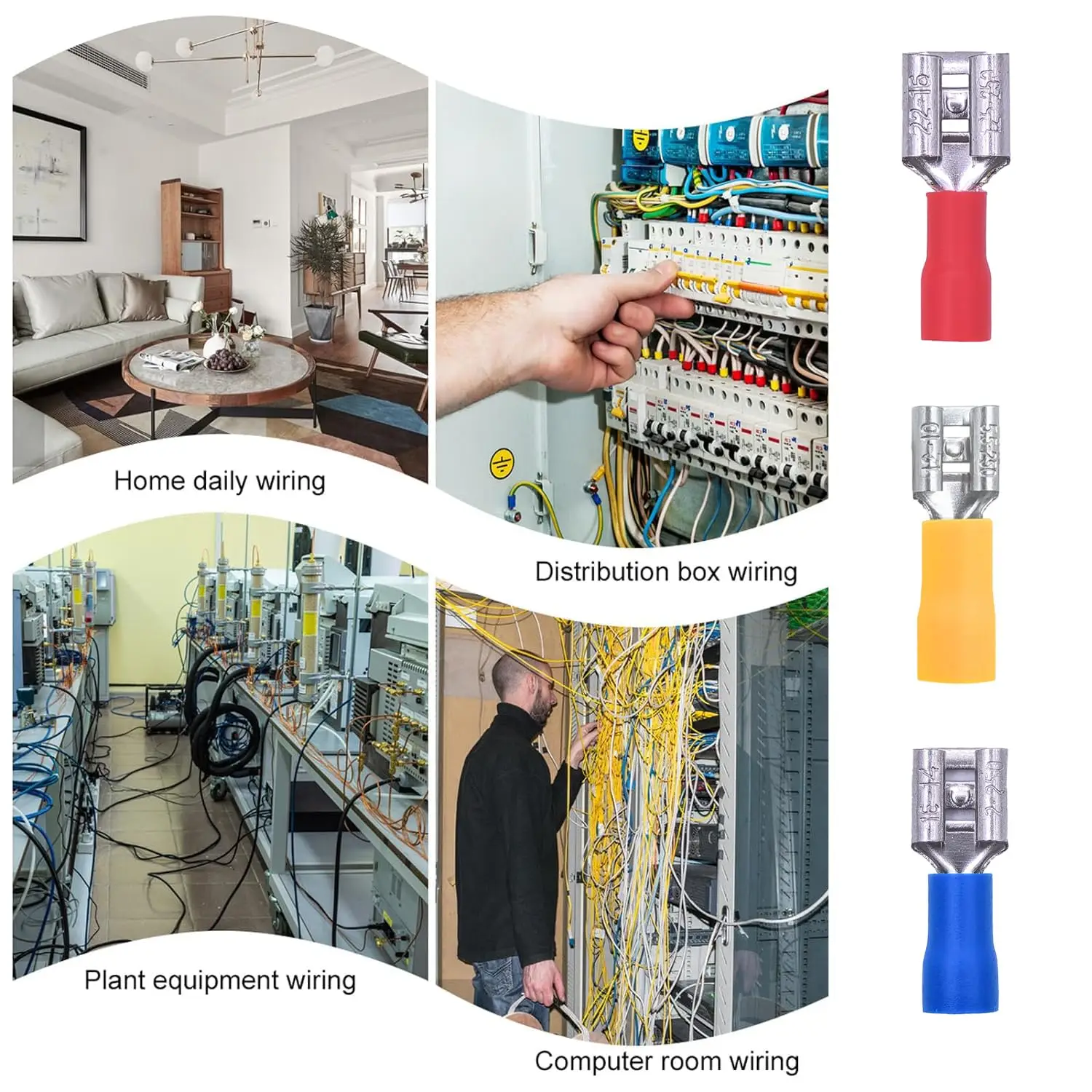 【Conectores de protección de extremos aislados】El extremo de los conectores de virola está hecho de material de PVC que tiene propiedades retardantes de llama, evita que los cortocircuitos y los extremos de los cables se deshilachen o rompan.Eso garantiza una conexión segura y confiable y reduce la aparición de problemas de seguridad ocultos.