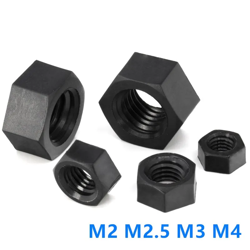 Comprar 50 piezas M2 M2.5 M3 M4, tuerca hexagonal de nailon negro, tuercas hexagonales de plástico