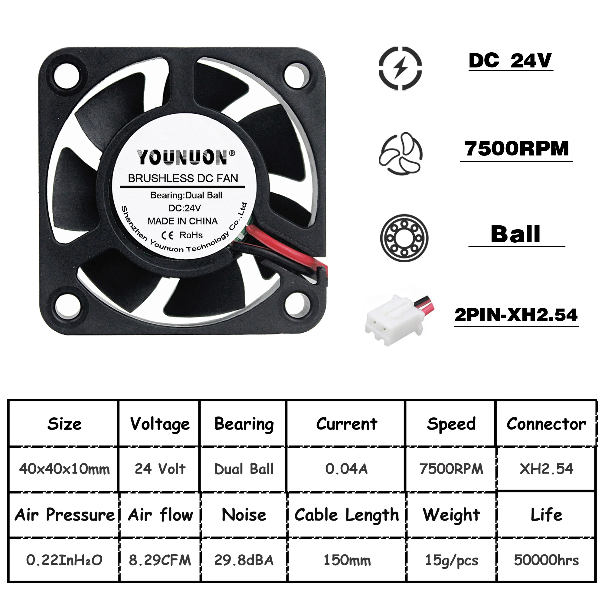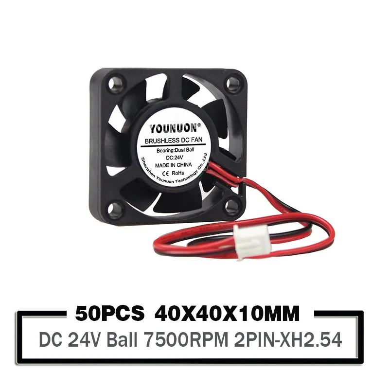 Comprar 50 piezas YOUNUON 24V Mini ventilador de refrigeración para computadora pequeño 40mm x 10mm DC sin escobillas 2PIN rodamiento de bolas doble 4010 40mm 40x40x10mm