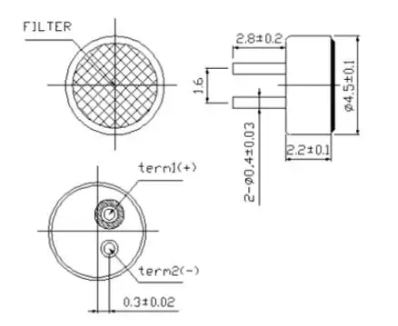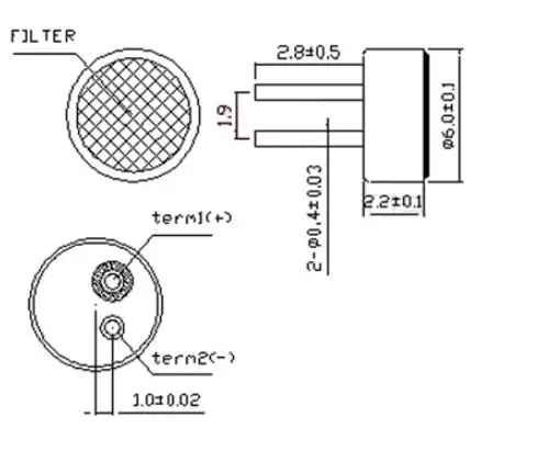Technical Parameters:Sensitivity: 50±2dBImpedance: 2.2KΩCurrent consumption: 0.5mAOperating voltage range: Max10VDC