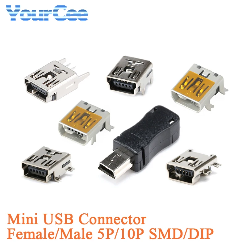 Comprar 50 uds/10 Uds MINIUSB enchufe hembra macho SMD 5Pin Mini B enchufe conector para carga de teléfono móvil