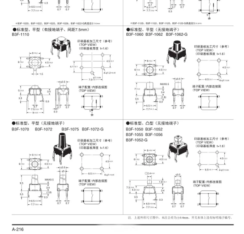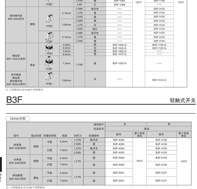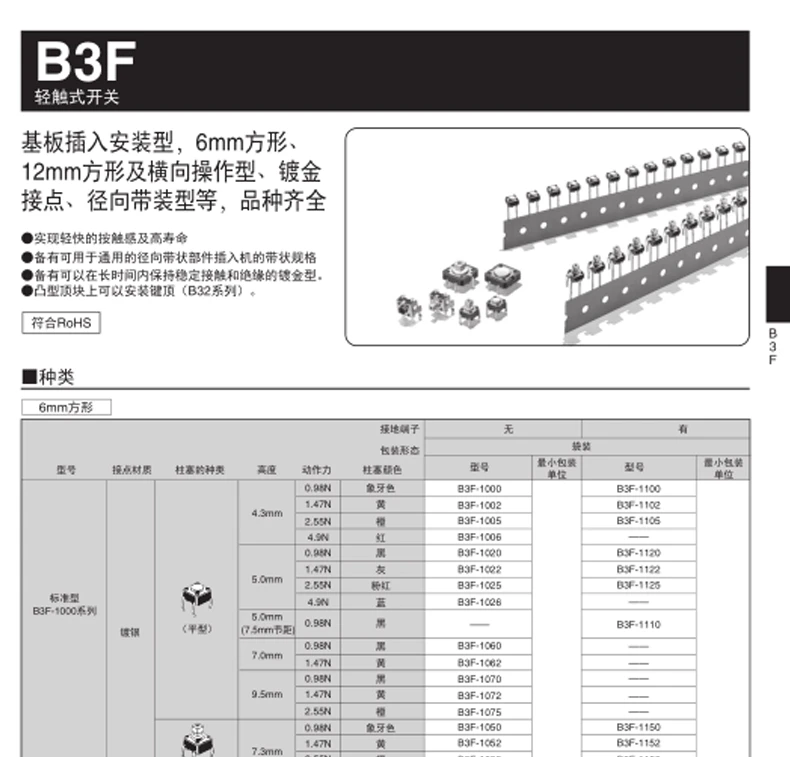 50 Uds 100% nuevo Original B3F botón de Interruptor táctil para luz B3F 1000 B3F-1002 B3F-1005 B3F 1022 B3F 1062 1072 6*6*4,3 MM 9,5 MM 5MM 7MM