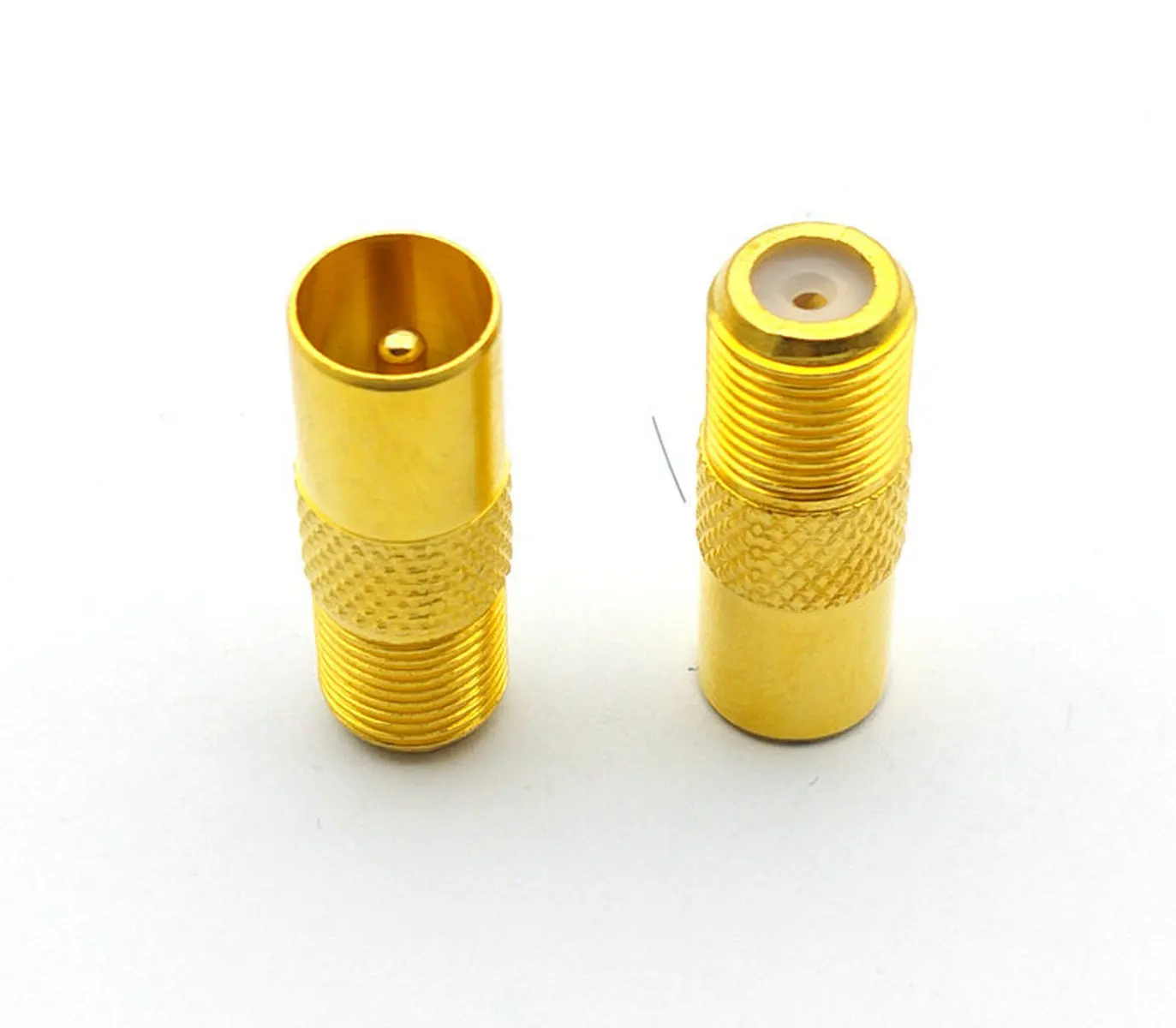 Comprar 50 uds/100 Uds conector hembra F chapado en oro a IEC PAL DVB-T TV conector macho RF