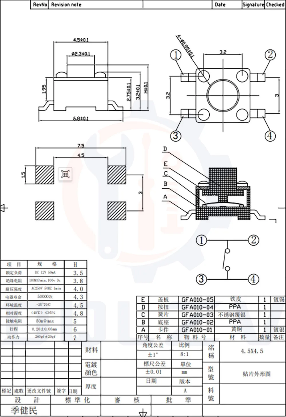 50 uds/100 Uds Mini interruptores 4,5x4,5*3,8-9mm Panel PCB interruptor táctil momentáneo Micro interruptor de botón SMT 4 pines