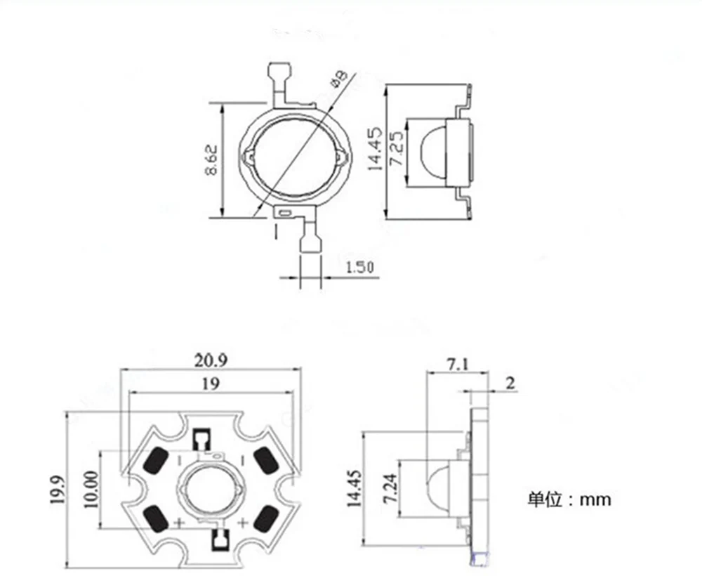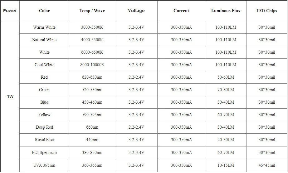 50 Uds 1W 3W LED de alta potencia espectro completo blanco cálido verde azul rojo profundo 660nm azul real UV IR con PCB de estrella negra de 20mm