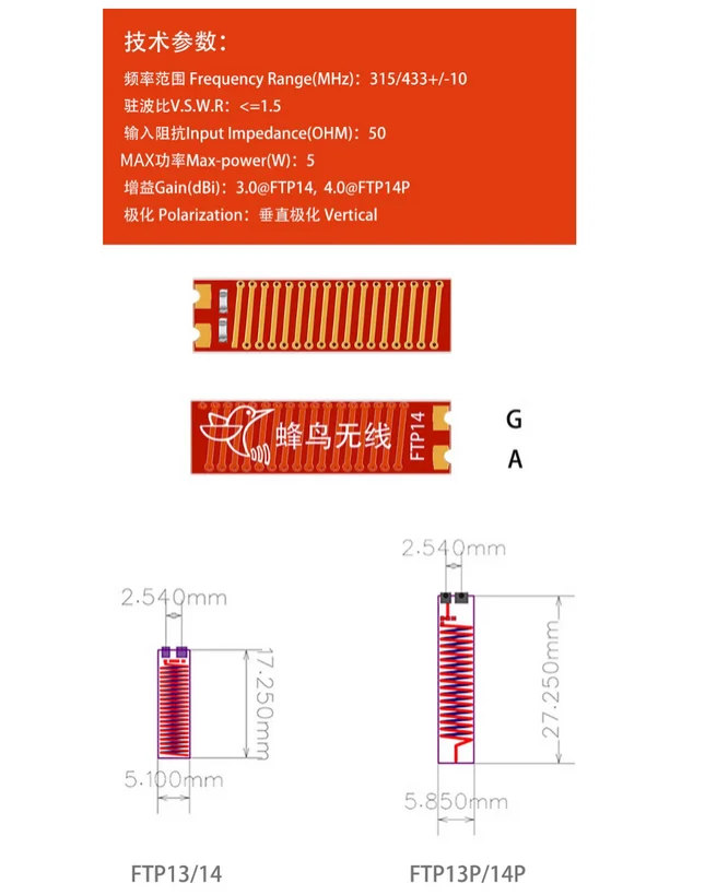 50 uds/2 uds FTP14P 4dbi frecuencia 433MHz antena SMD chapada en oro FTP14 3dbi 433M para módulo inalámbrico de larga distancia de alta ganancia