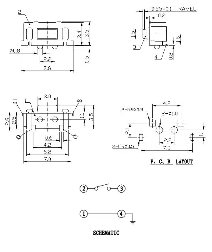Nombre del modelo: microinterruptor de 3*6*3,5 MM