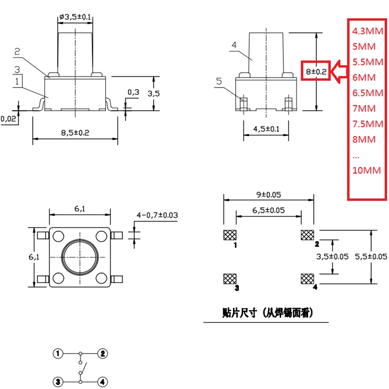 6x6x8mm SMD4