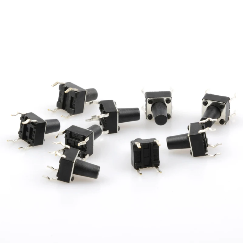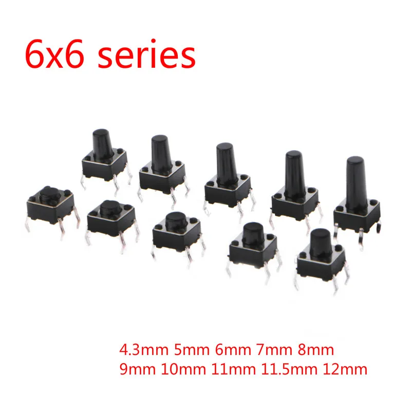 Comprar 50 Uds 6x6mm Panel PCB 6X6X5/4,3/6/7/8/9/10/12MM interruptor táctil interruptor de botón 12V 4PIN DIP Micro interruptor para TV/juguetes/hogar