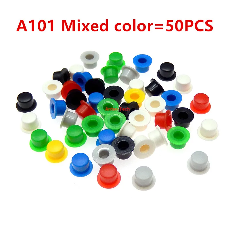 50 Uds A101 interruptor de botón táctil tipo tapa redonda para 6 × 6 6*6mm microinterruptor liso agujero interior 3,1/3,4mm kit de botones de tapa de color
