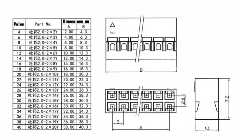 Comprar 50 Uds Dupont 2,0 carcasa de plástico conector de doble fila de paso de 2,0mm 2x2P/2x3P/2x4P/2x5P/2x6P/2x7P/2x8P/2X10P/2X15P/2X20 Pin