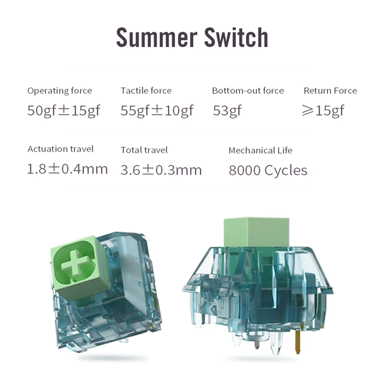 Fuerza operativa: 50 gf ± 15 gf Fuerza táctil: 55 gf ± 10 gf Recorrido previo: 1,8 mm ± 0,4 mm Recorrido total: 3,6 mm ± 0,3 mm Nombre del interruptor: interruptor de verano Kailh BOX Tipo de interruptor: interruptor táctil Clicky Vida: 80 millones 5 pines Cantidad: 50 Uds. Color: cian Material: plástico Contenido del paquete: 50 * interruptores de teclado Solo el contenido del paquete anterior, otros productos no están incluidos. Nota: Los reflejos de la luz y las diferentes pantallas pueden hacer que el color del elemento en la imagen sea un poco diferente al real. El error de medición permitido es +/- 1-3 cm.
